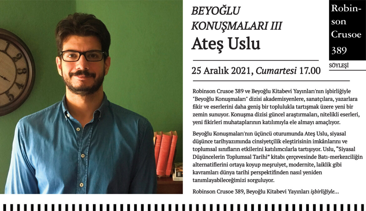 Beyoğlu Konuşmaları III: Siyasal Düşüncelerin Toplumsal Tarihi (Hasan Aksakal ile Söyleşi) > Ateş Uslu 25 Aralık 2021 0 Etkinlik Detayları Tarih: 25 Aralık 2021 FacebookTwitterLinkedinWhatsappEmail